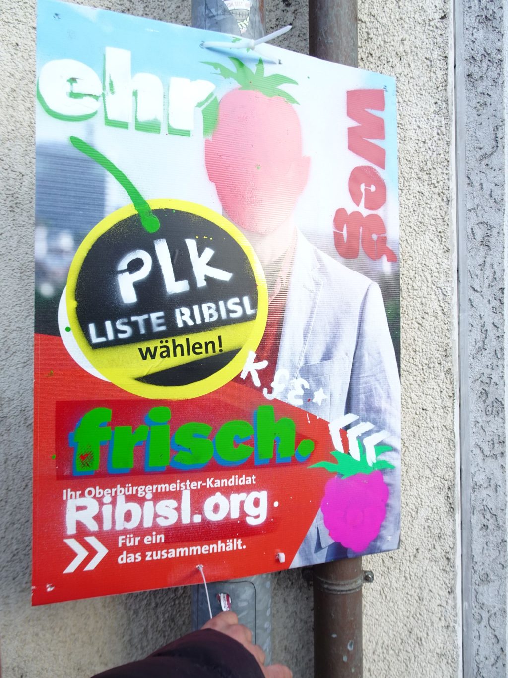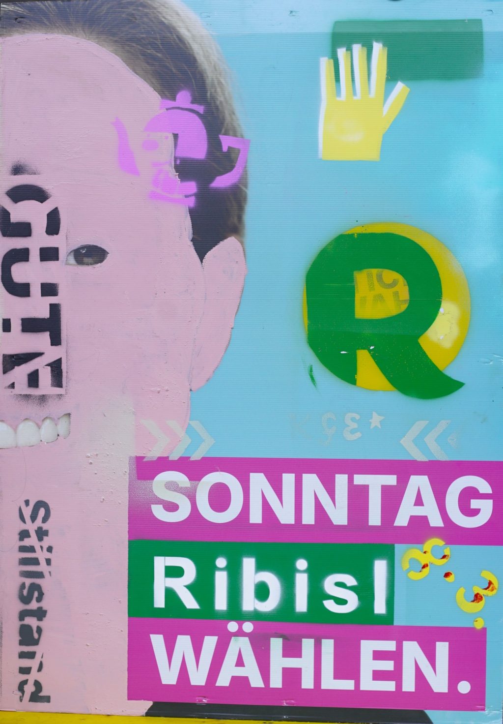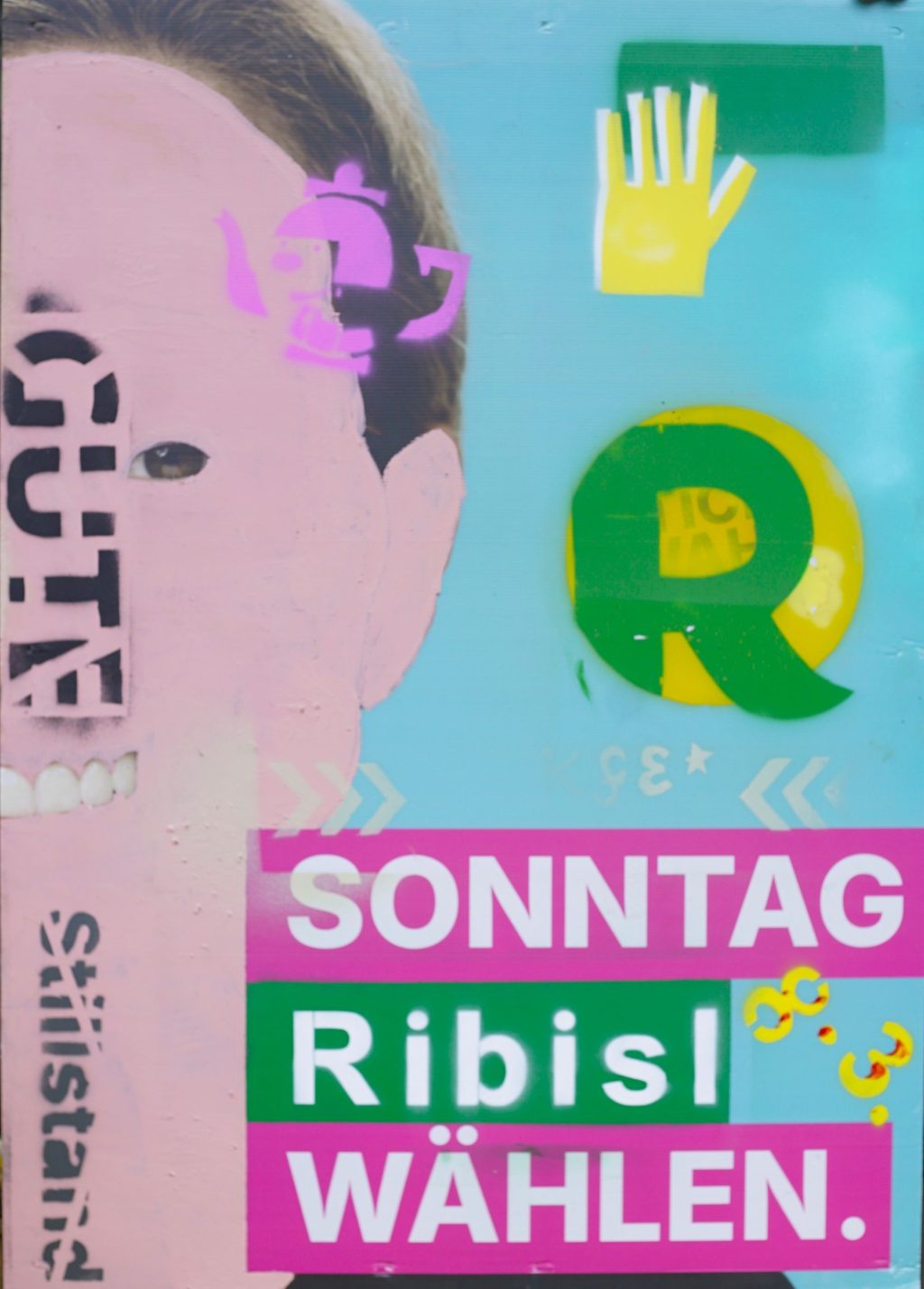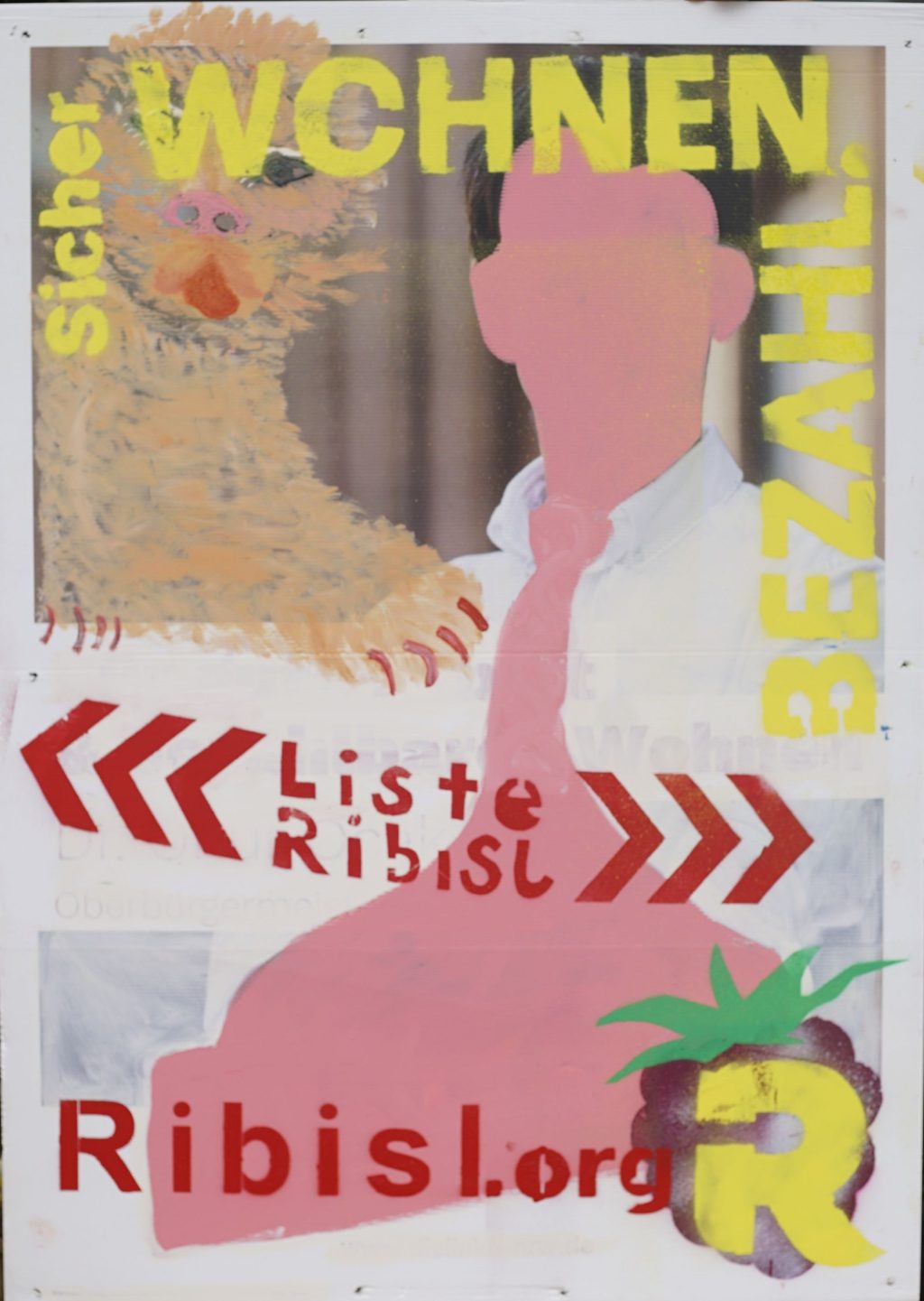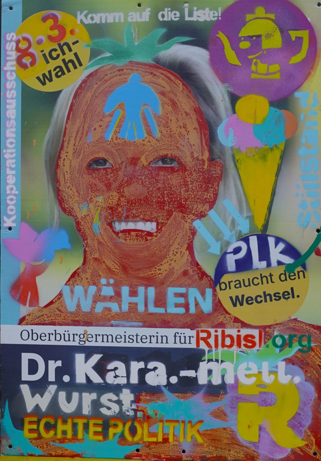 Die Ribisl-Plakate sind Unikate, individuelle Statements, Teil einer sozialen Skulptur und Kunst und dürfen so auch in der Welterbepufferzone gezeigt werden. Siehe auch hier: https://ribisl.org/stellungnahmen/#malkampfstand