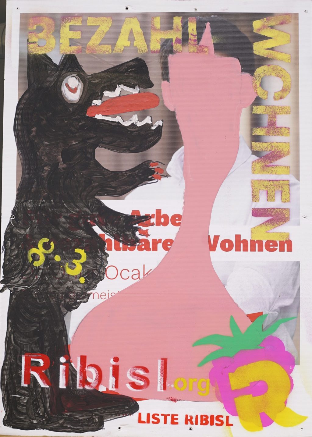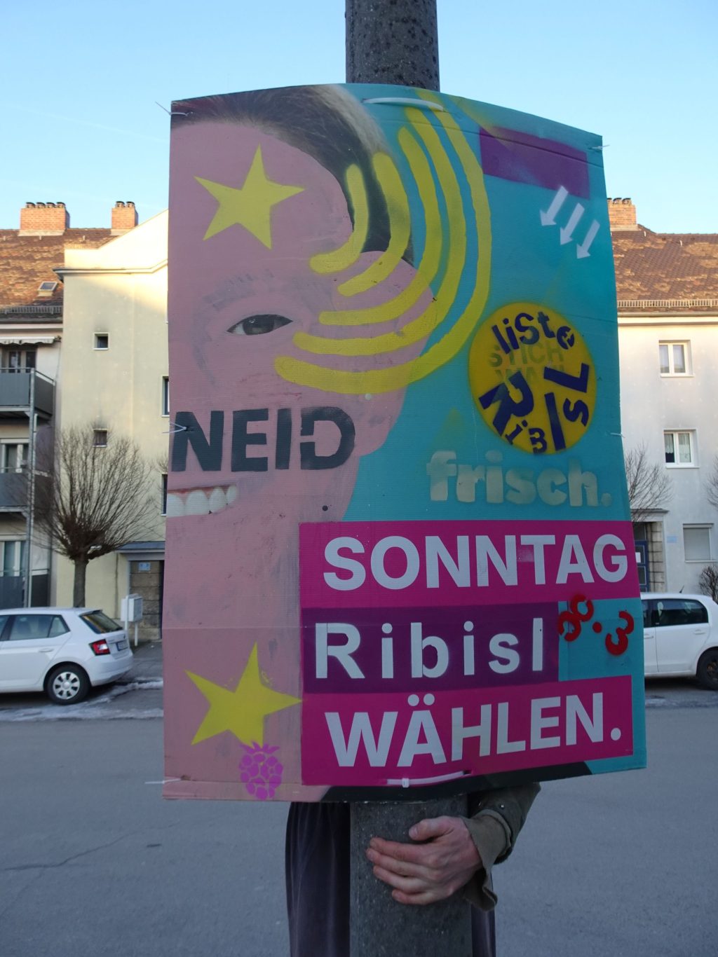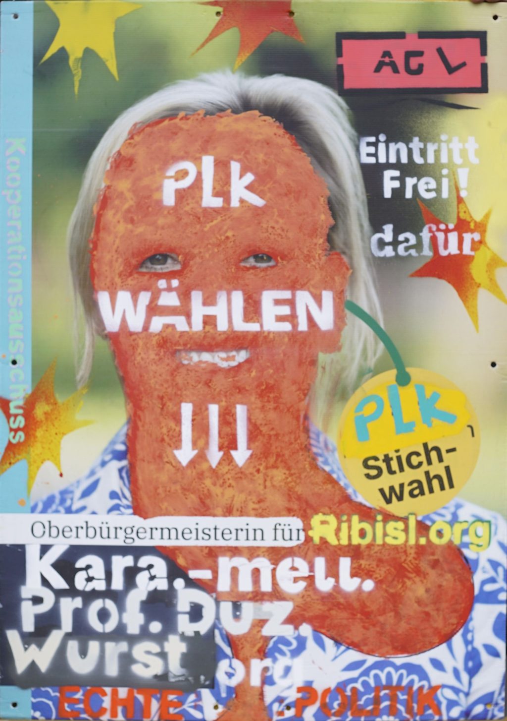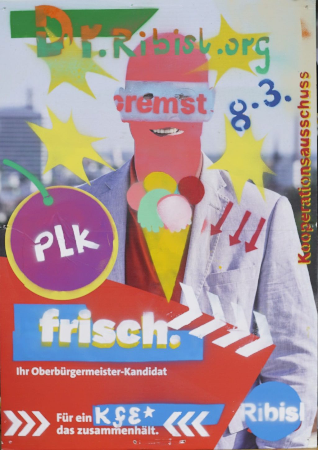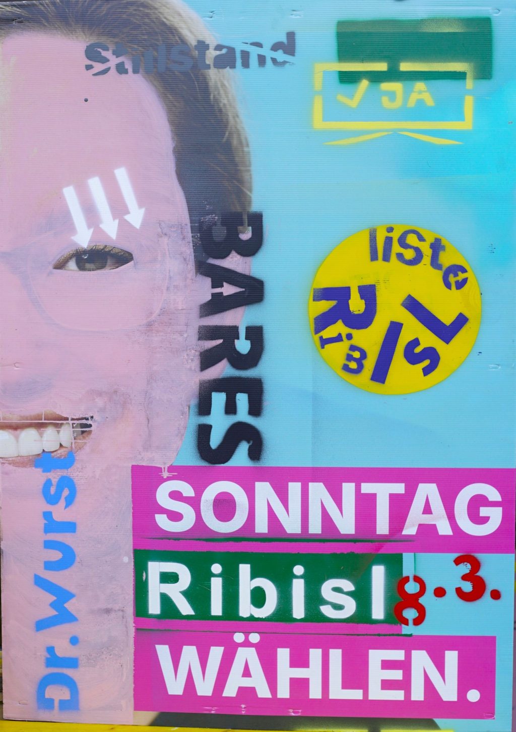 Die Ribisl-Plakate sind Unikate, individuelle Statements, Teil einer sozialen Skulptur und Kunst und dürfen so auch in der Welterbepufferzone gezeigt werden. Siehe auch hier: https://ribisl.org/stellungnahmen/#malkampfstand
