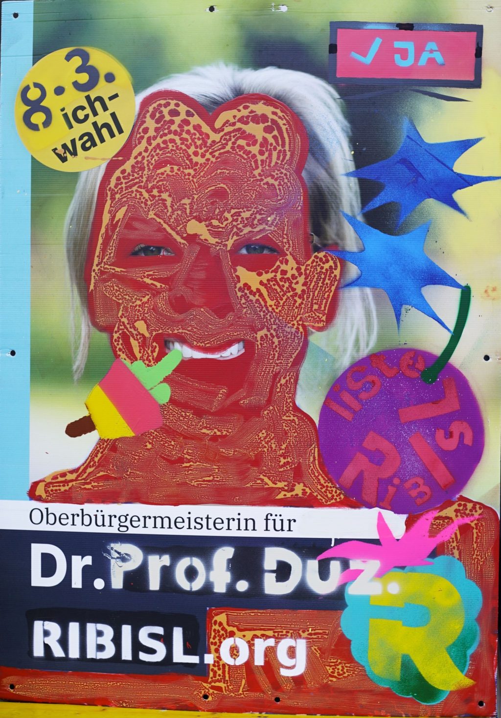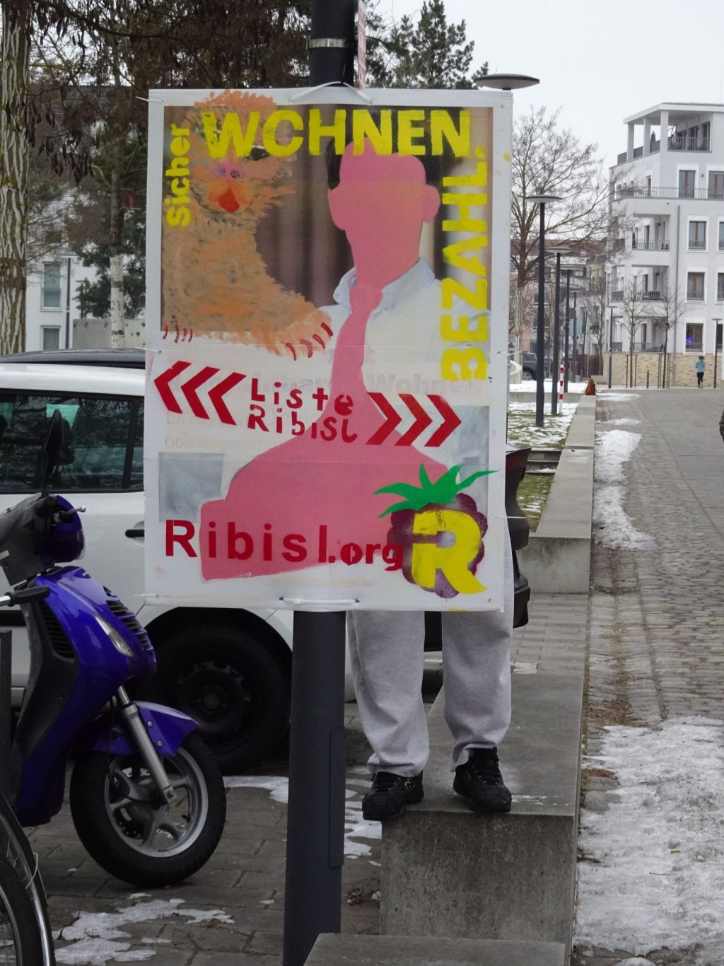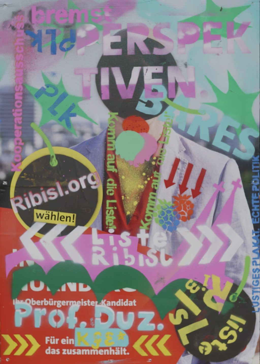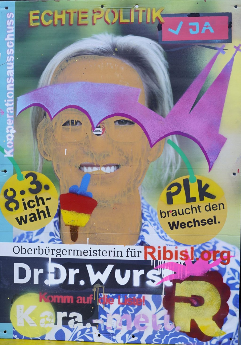 Die Ribisl-Plakate sind Unikate, individuelle Statements, Teil einer sozialen Skulptur und Kunst und dürfen so auch in der Welterbepufferzone gezeigt werden. Siehe auch hier: https://ribisl.org/stellungnahmen/#malkampfstand