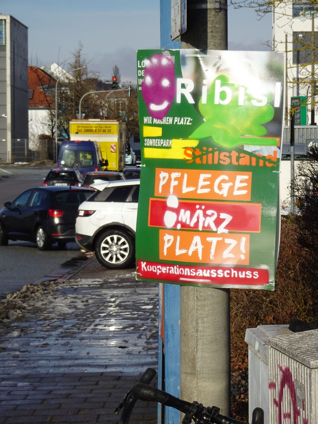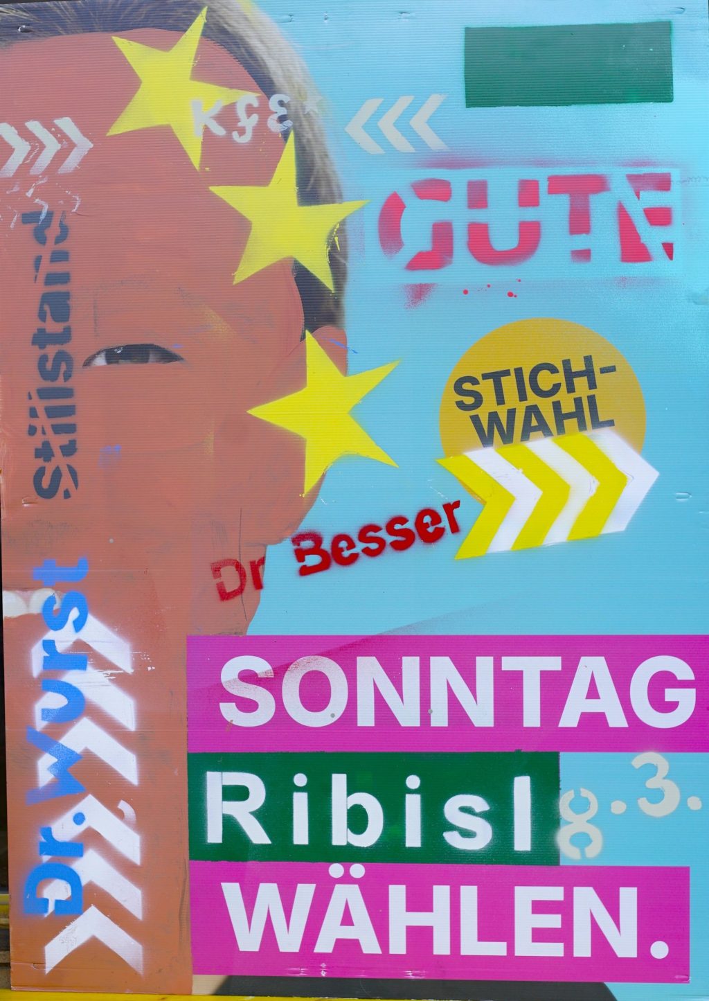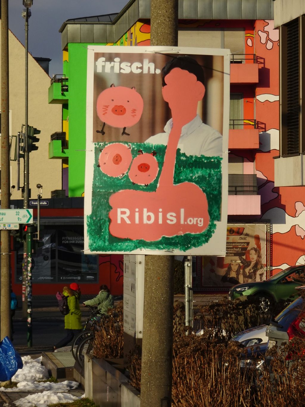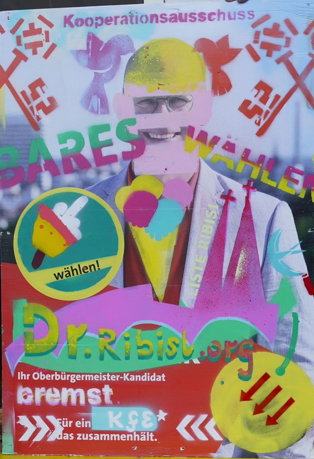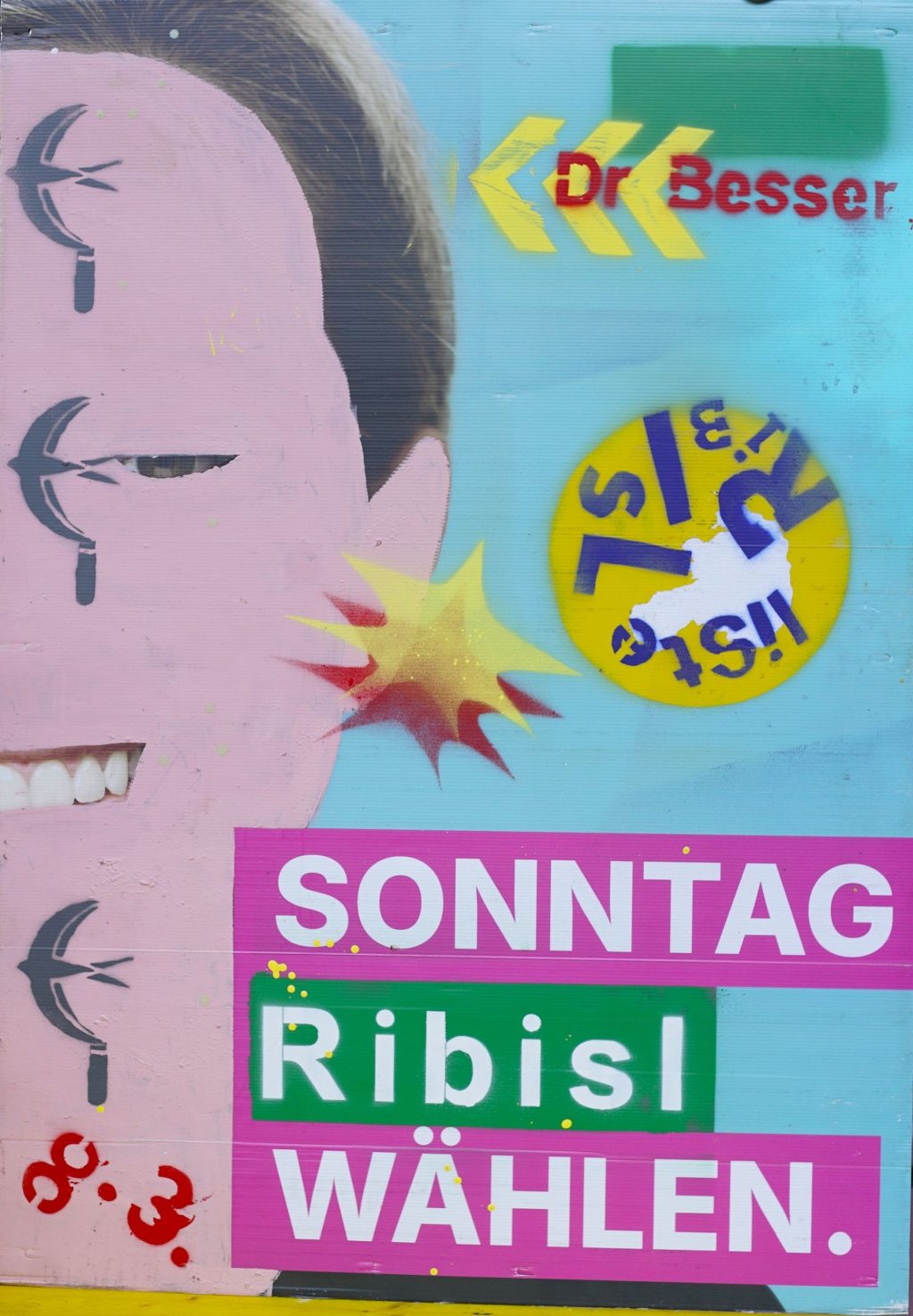 Die Ribisl-Plakate sind Unikate, individuelle Statements, Teil einer sozialen Skulptur und Kunst und dürfen so auch in der Welterbepufferzone gezeigt werden. Siehe auch hier: https://ribisl.org/stellungnahmen/#malkampfstand