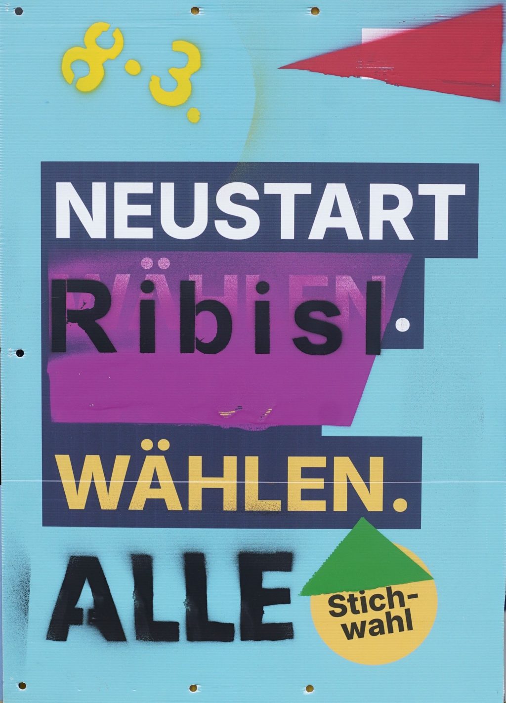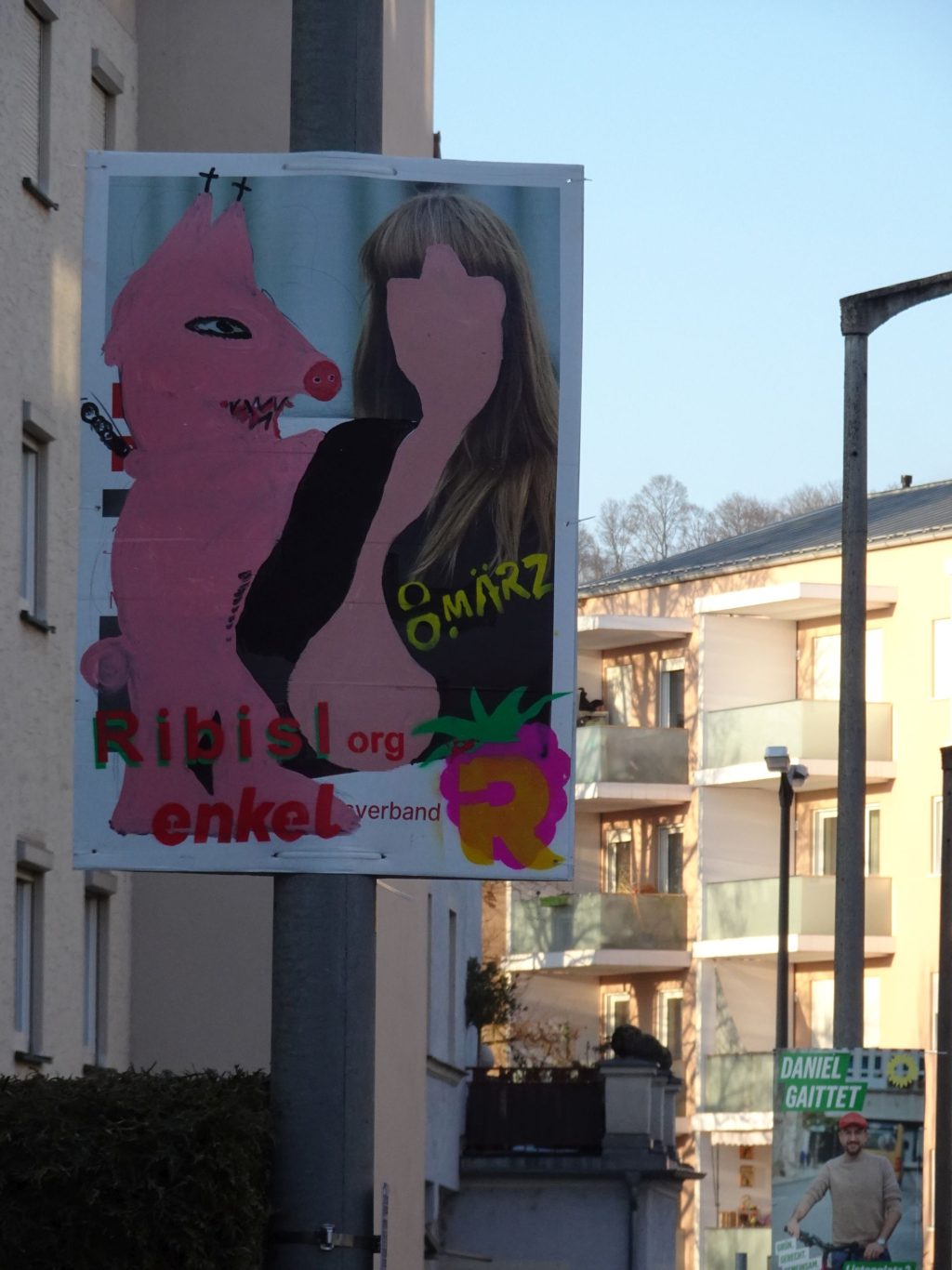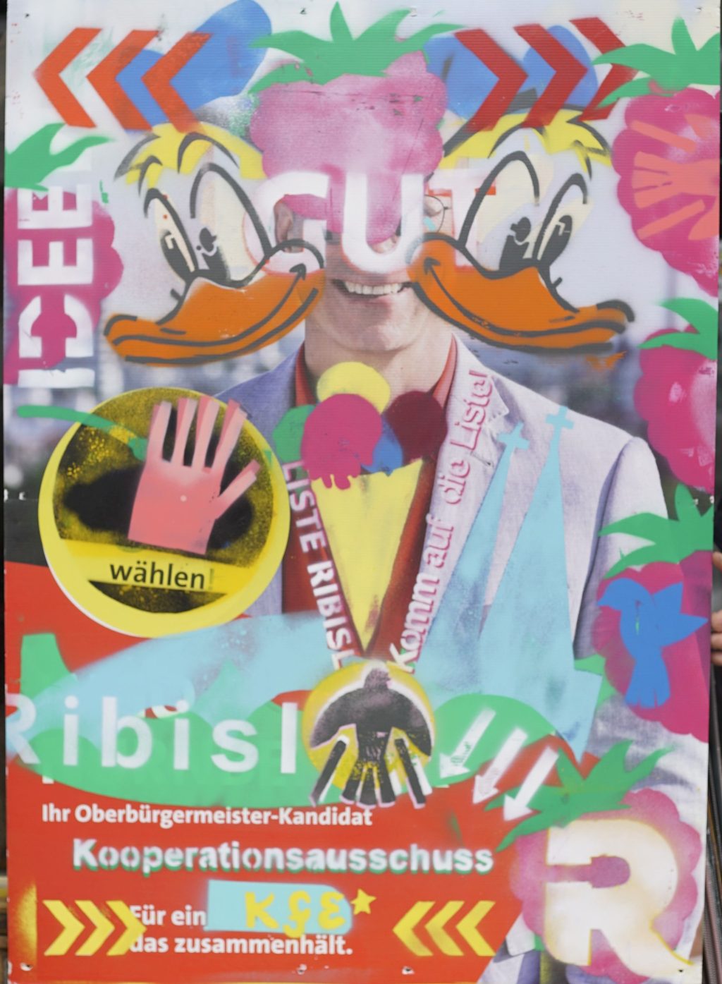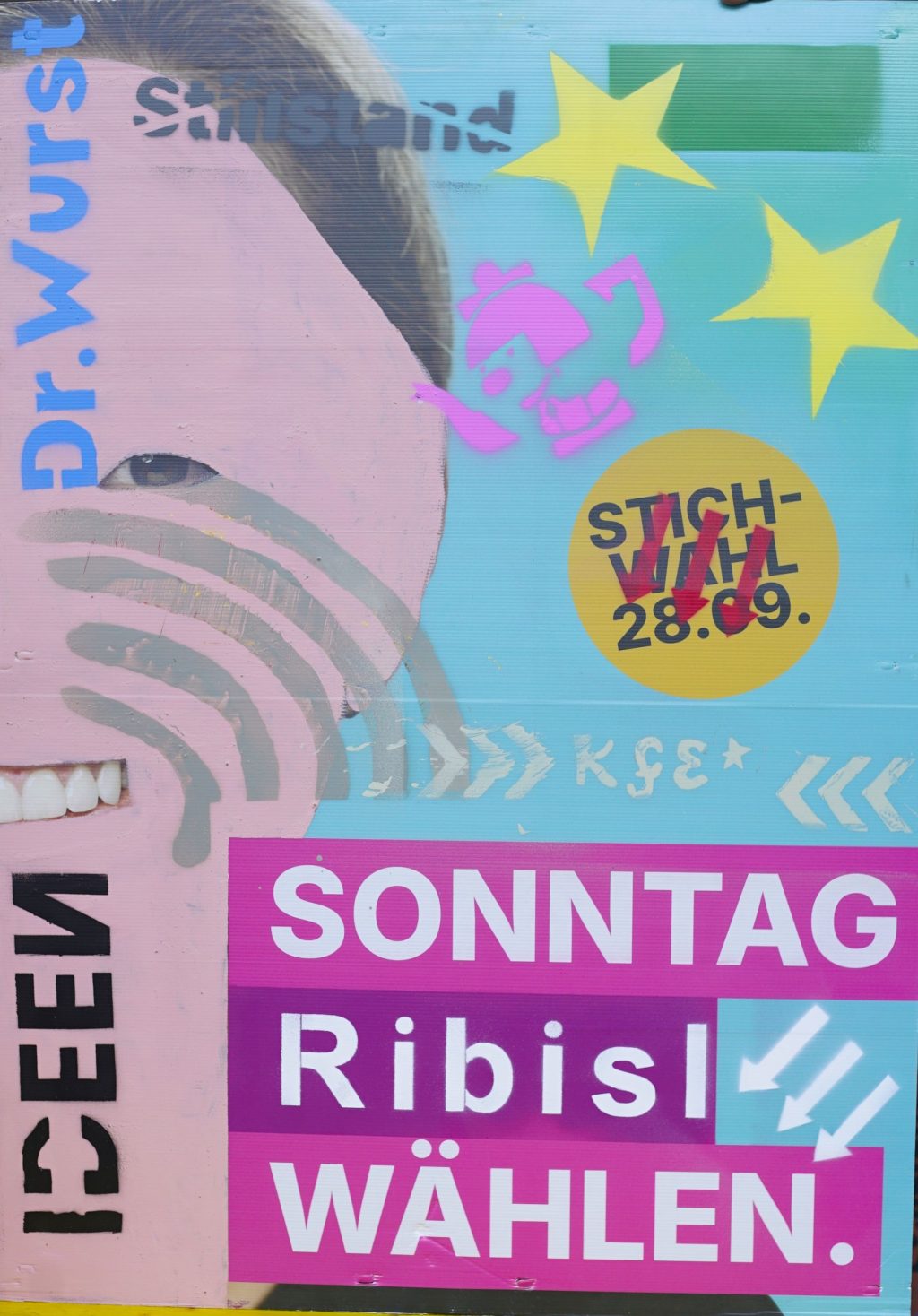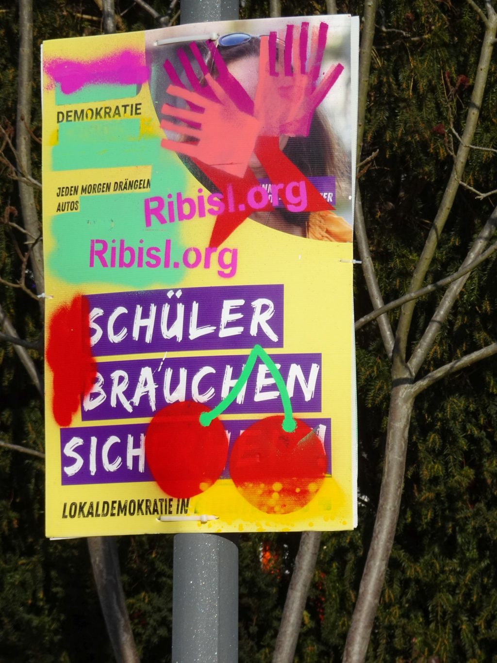 Die Ribisl-Plakate sind Unikate, individuelle Statements, Teil einer sozialen Skulptur und Kunst und dürfen so auch in der Welterbepufferzone gezeigt werden. Siehe auch hier: https://ribisl.org/stellungnahmen/#malkampfstand