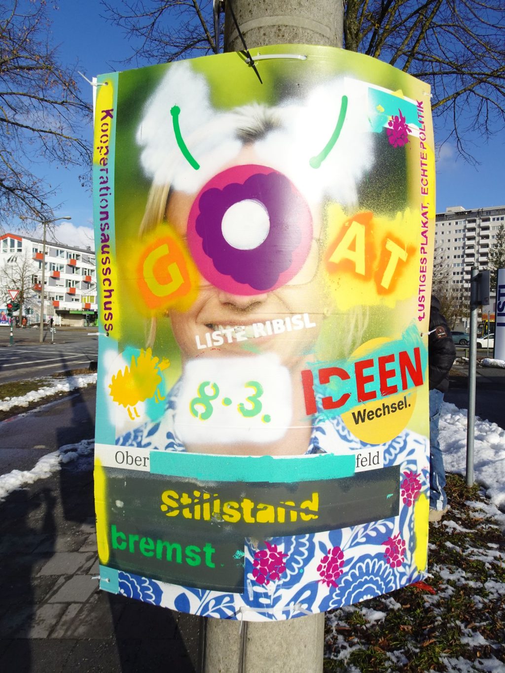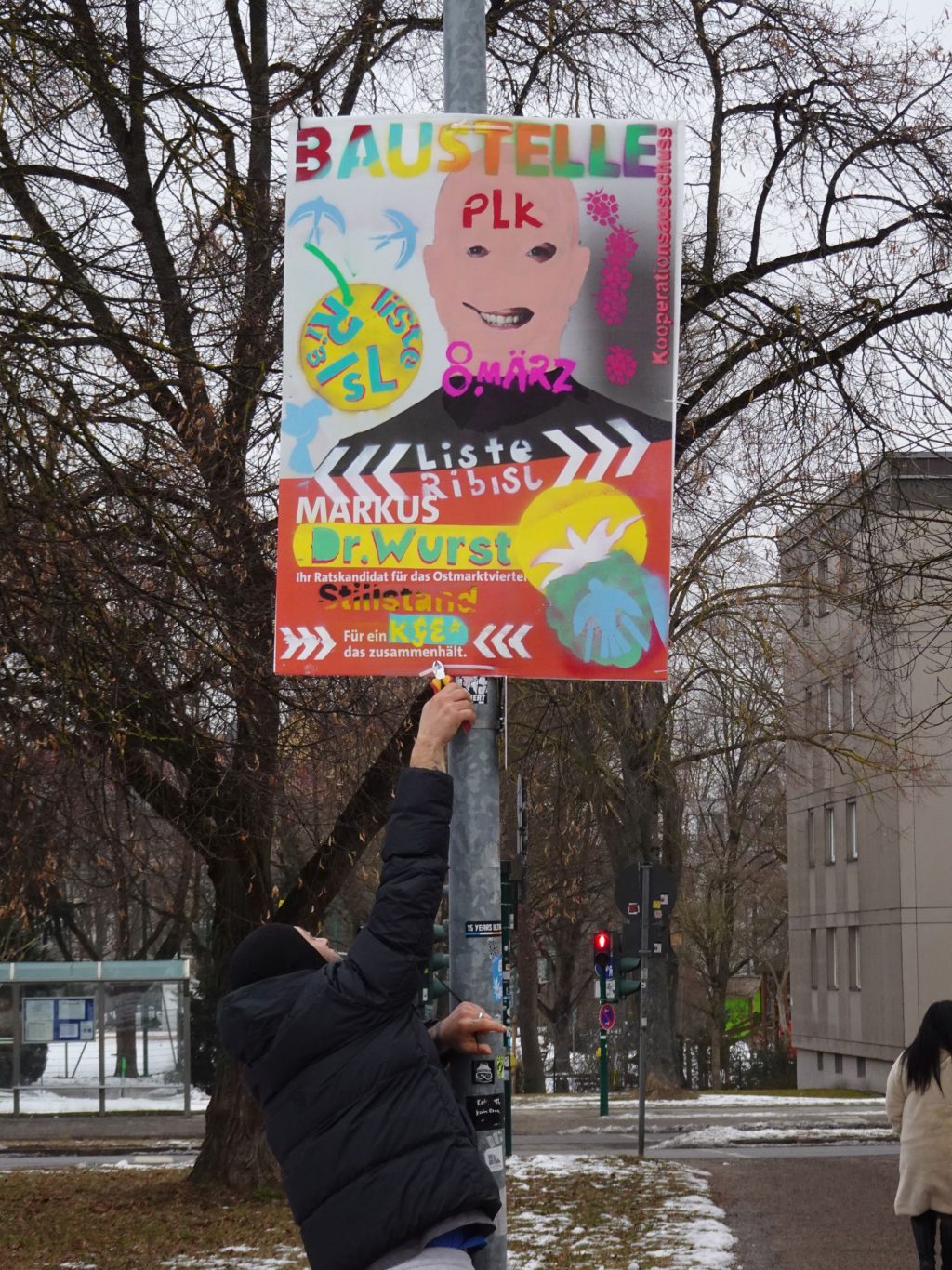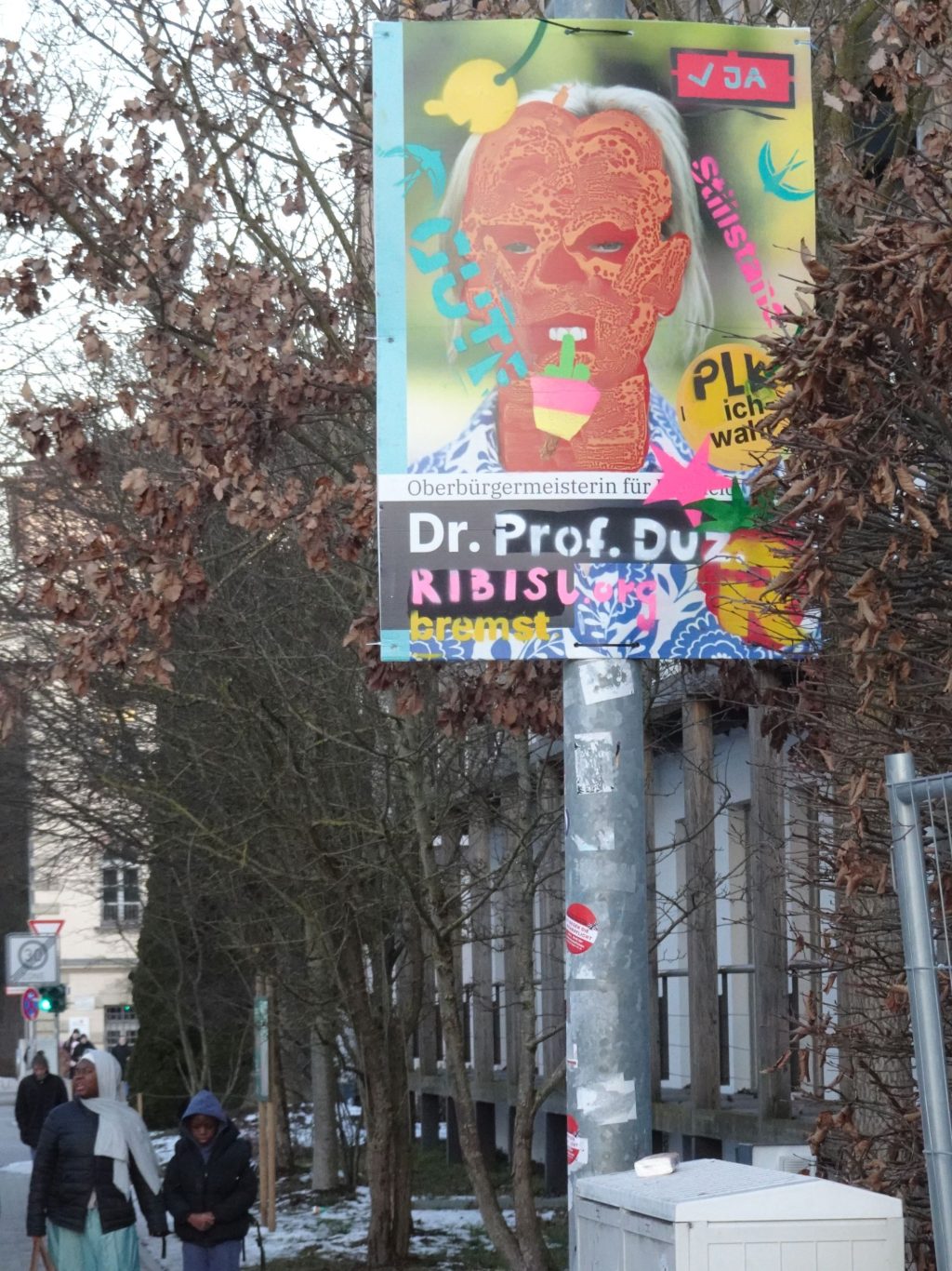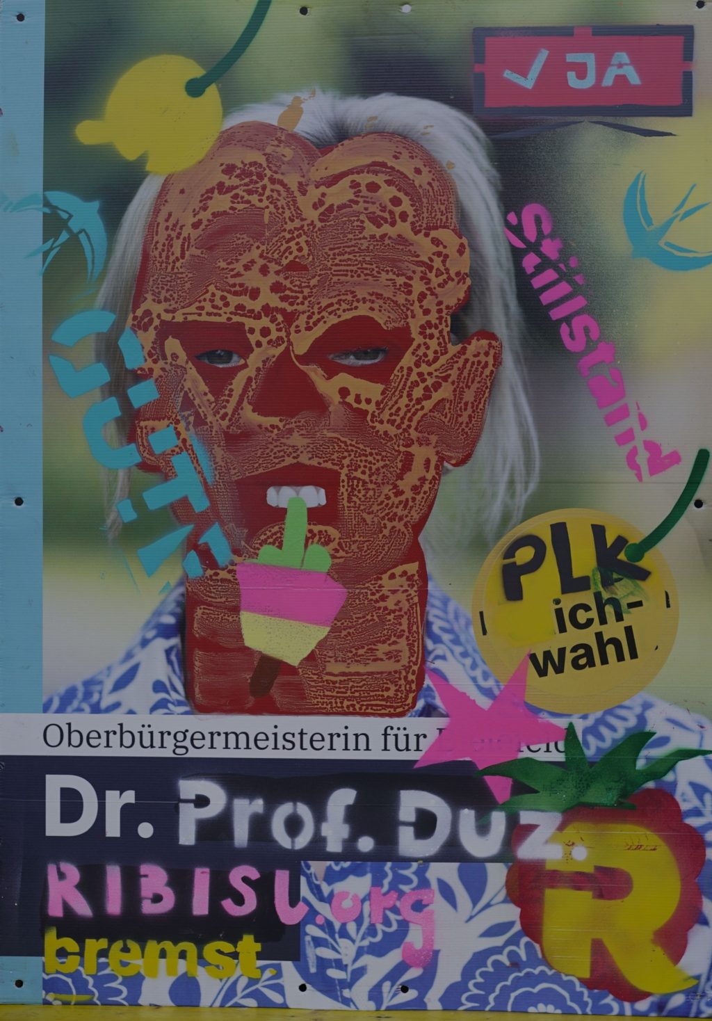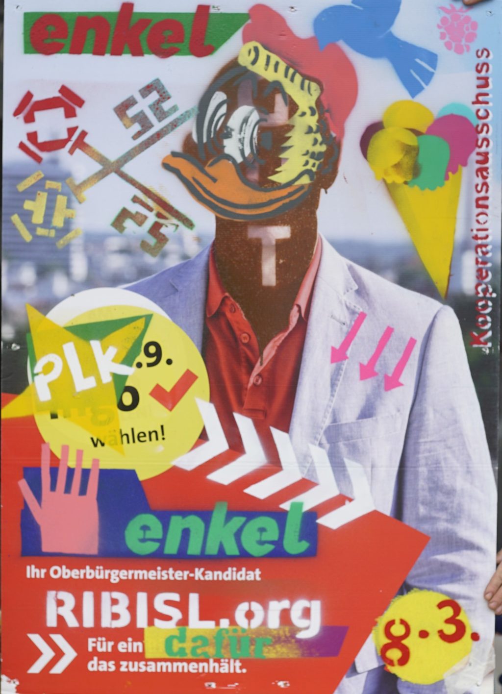 Die Ribisl-Plakate sind Unikate, individuelle Statements, Teil einer sozialen Skulptur und Kunst und dürfen so auch in der Welterbepufferzone gezeigt werden. Siehe auch hier: https://ribisl.org/stellungnahmen/#malkampfstand
