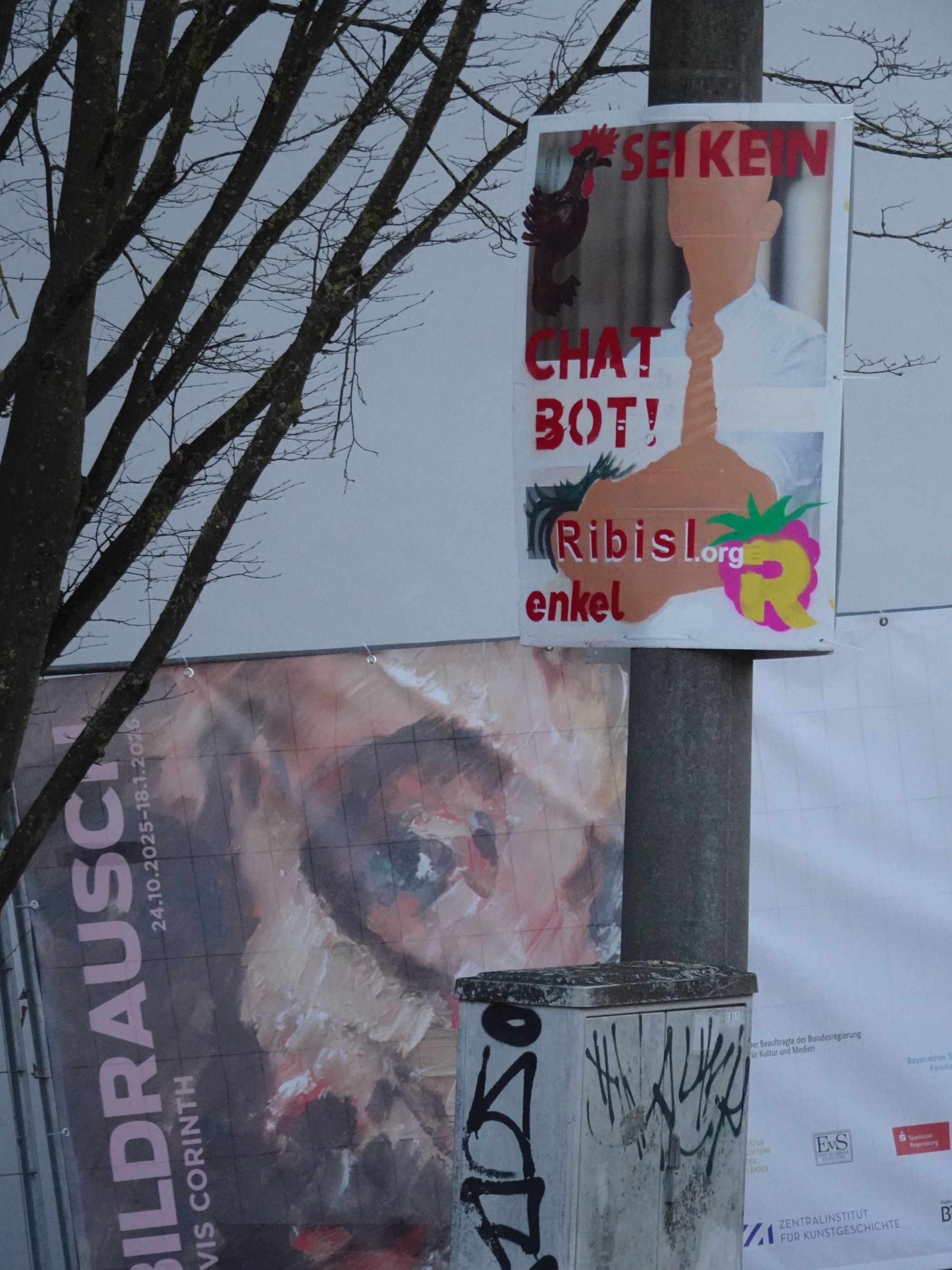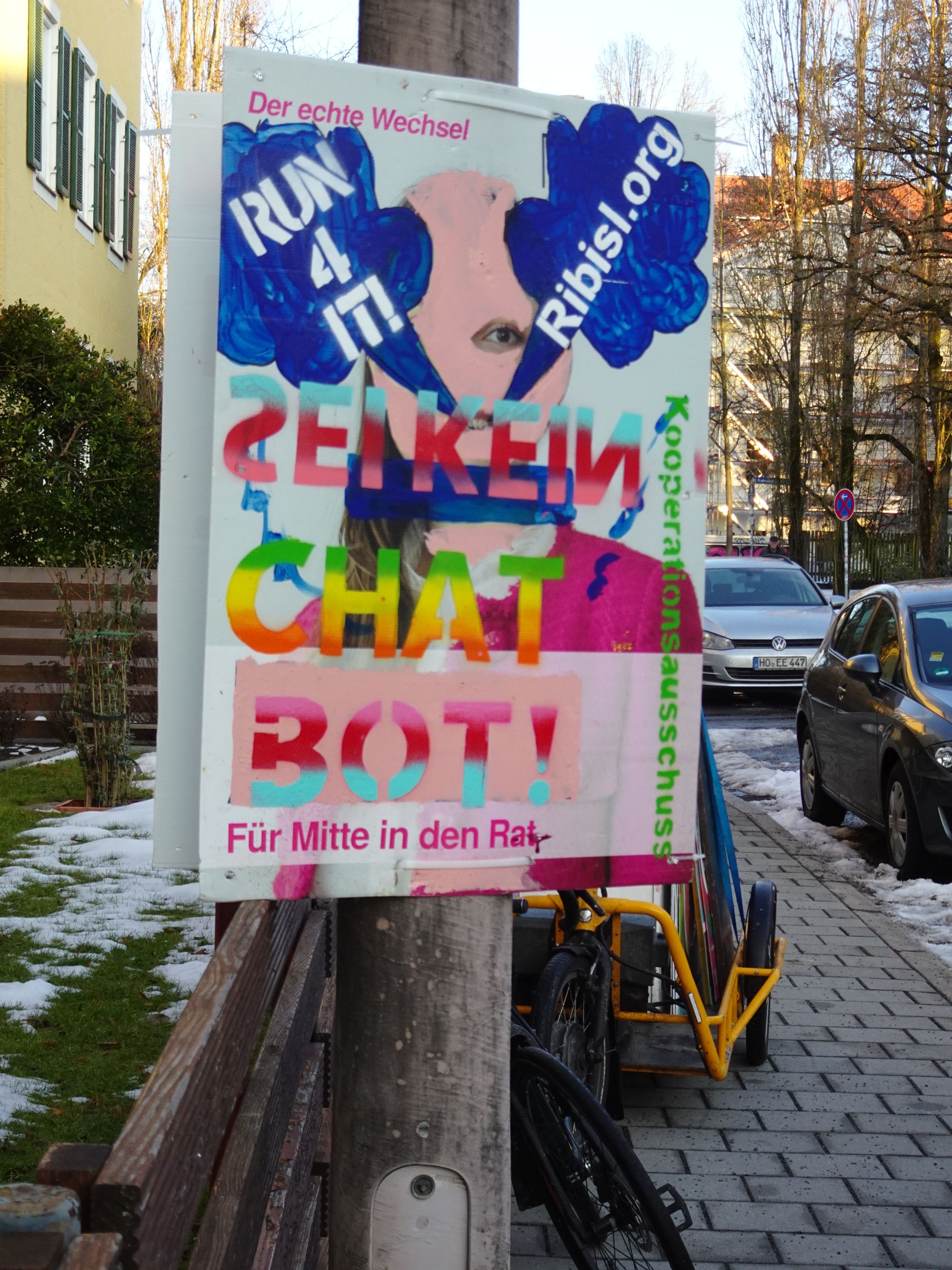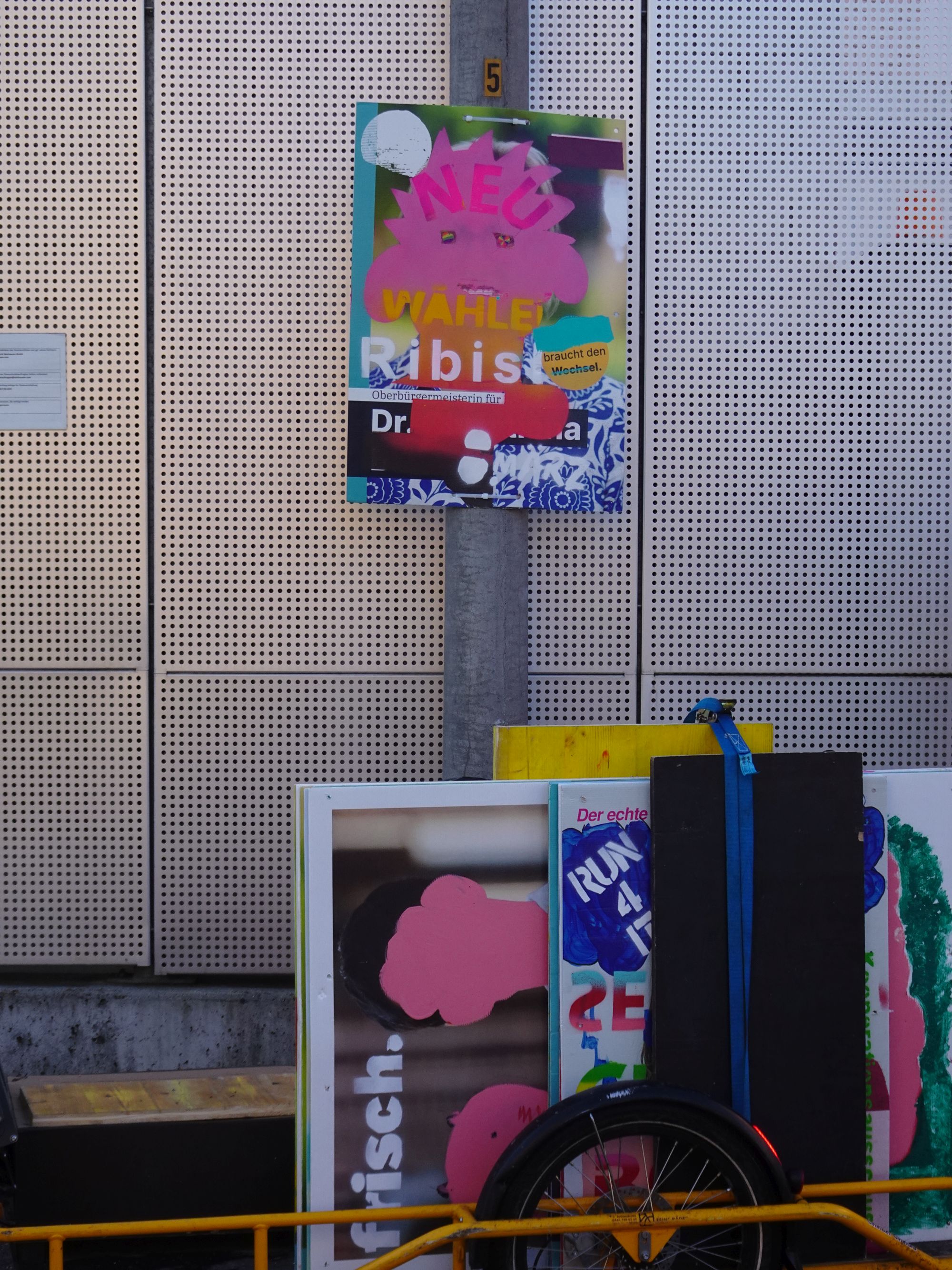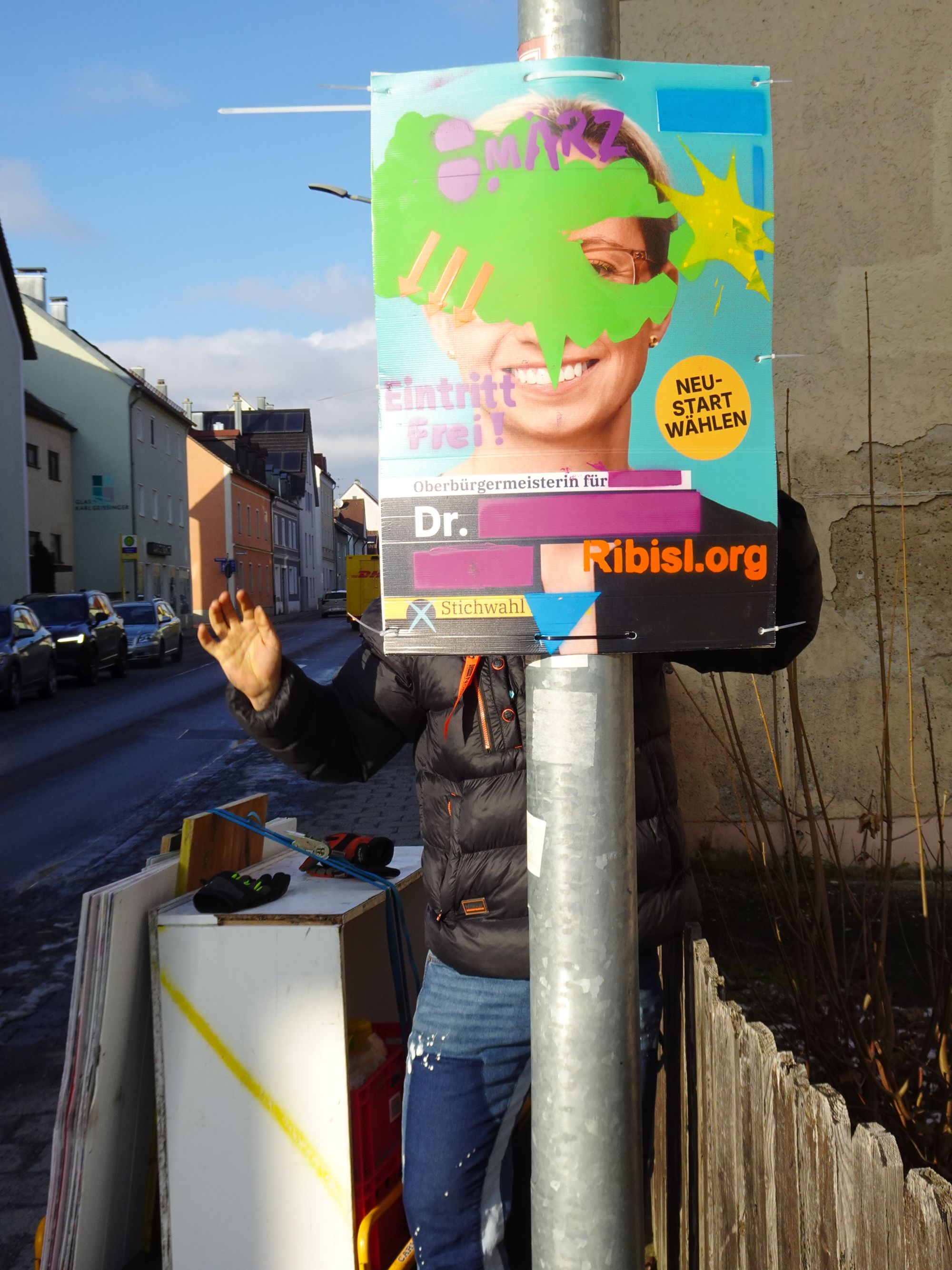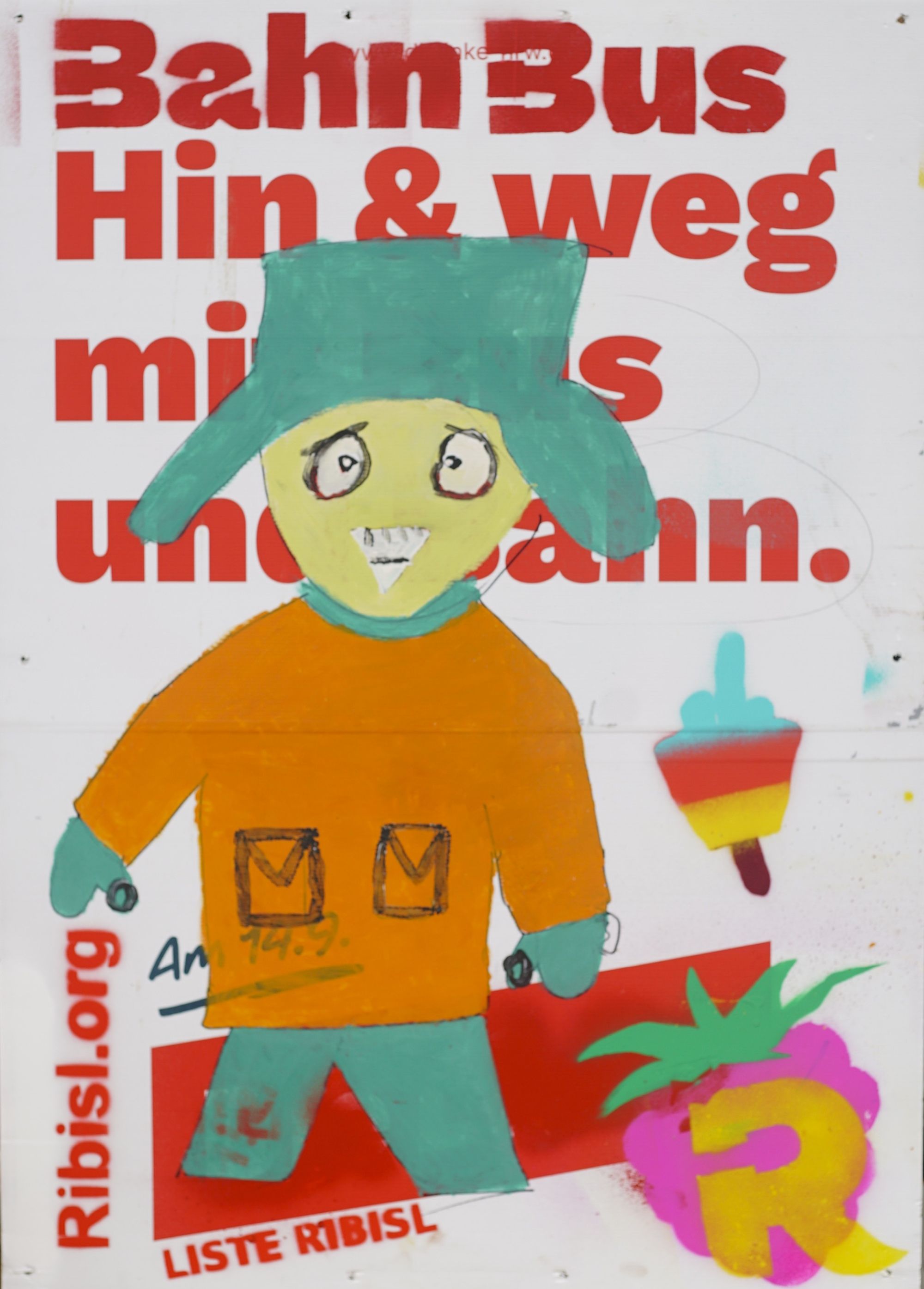 Die Ribisl-Plakate sind Unikate, individuelle Statements, Teil einer sozialen Skulptur und Kunst und dürfen so auch in der Welterbepufferzone gezeigt werden. Siehe auch hier: https://ribisl.org/stellungnahmen/#malkampfstand
